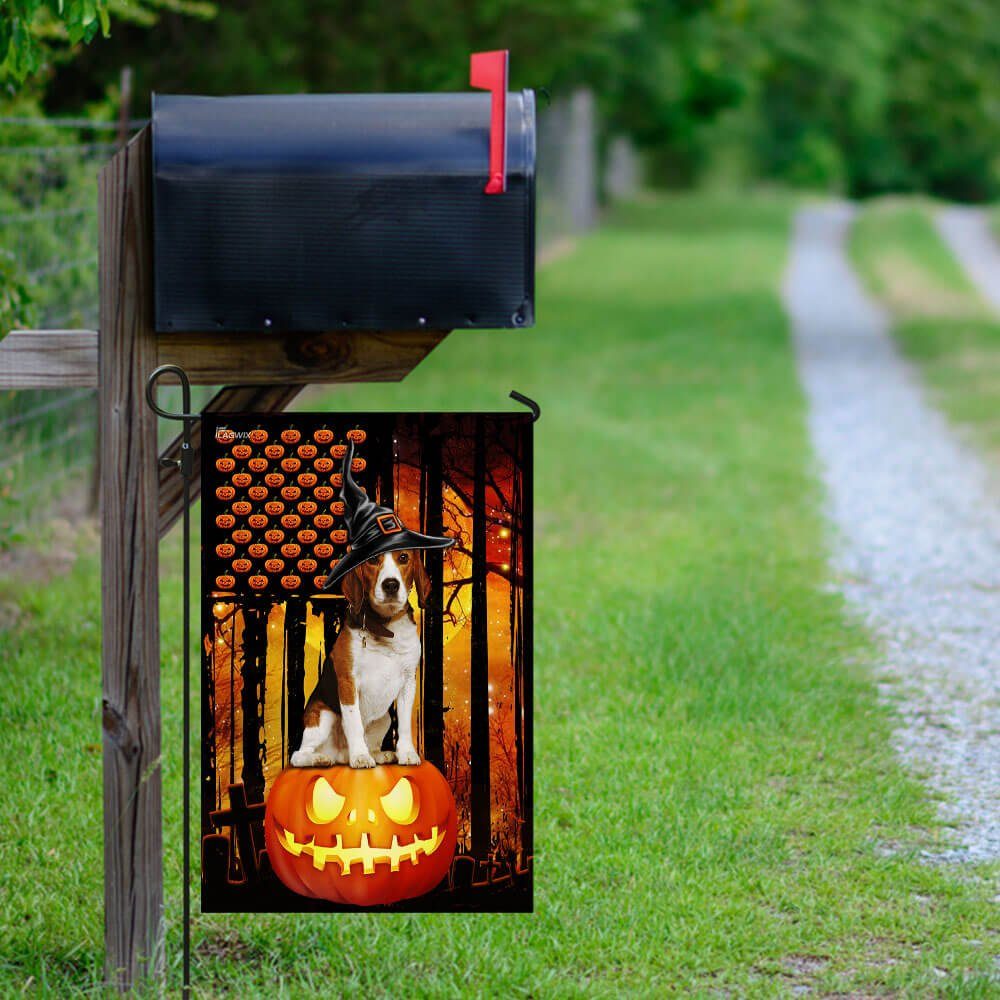 Beagle Dog. Happy Halloween Pumpkin America Flag