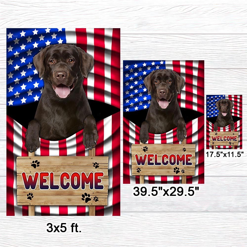 Chocolate Labrador Dog Welcome American Flag TQN1135Fv1b