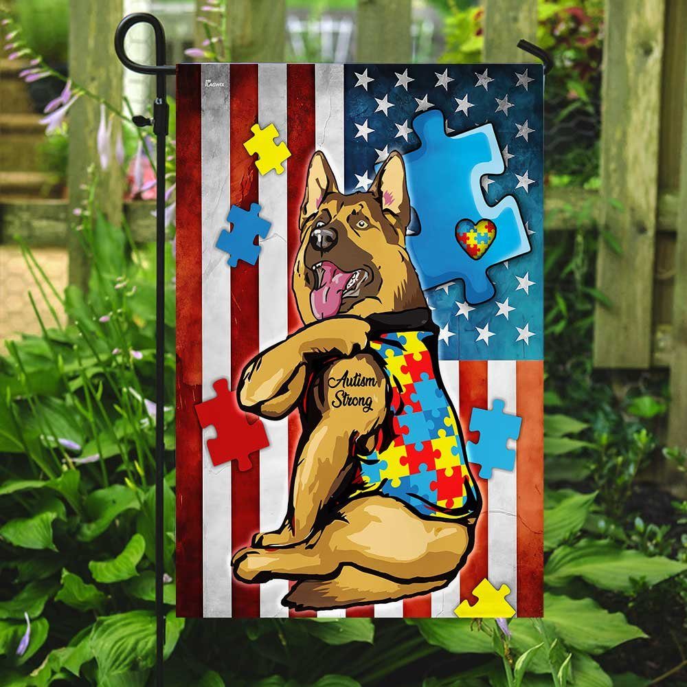 German Shepherd Strong Autism Awareness Flag