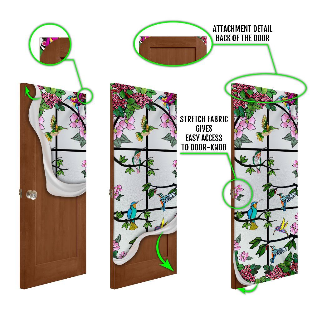 Hummingbird Floral Garden Stained Glass Door Cover