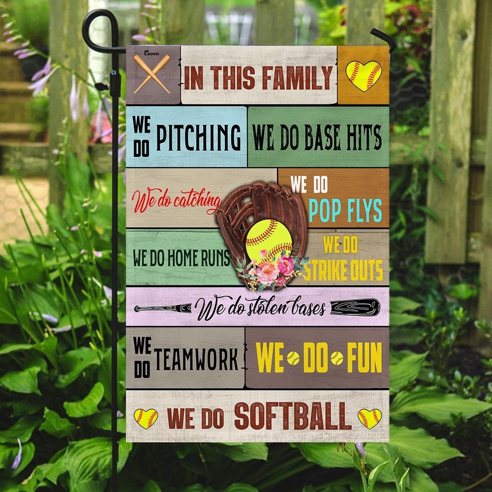 In This Family We Do Softball Flag