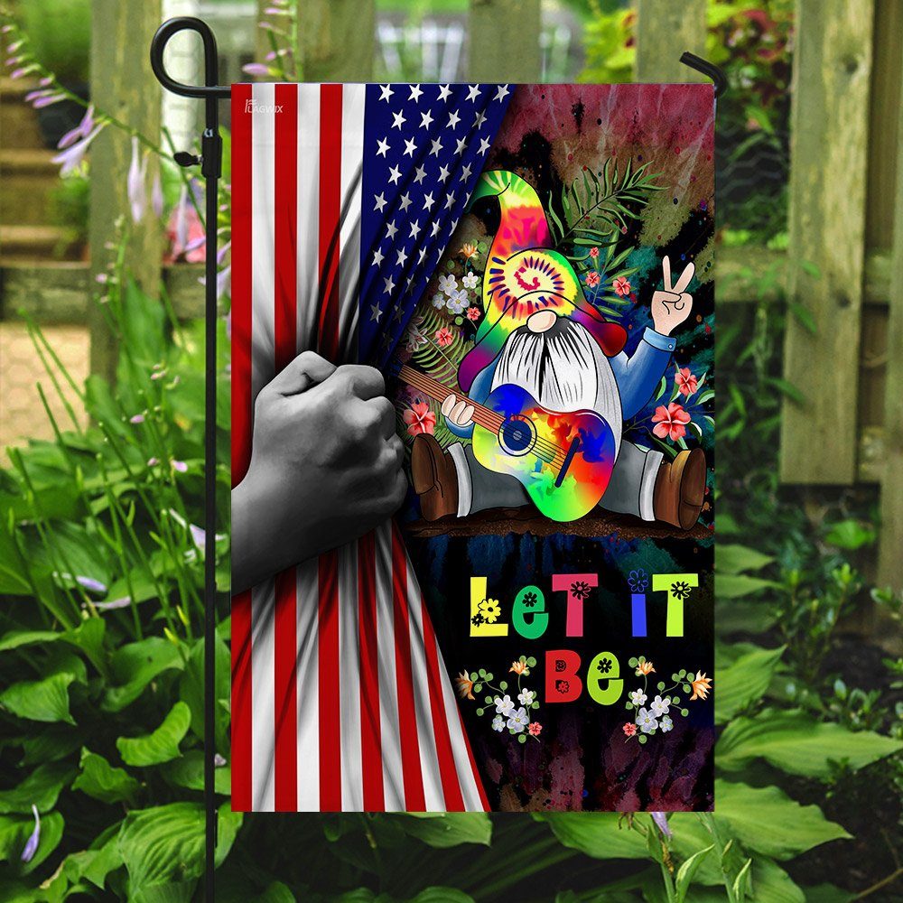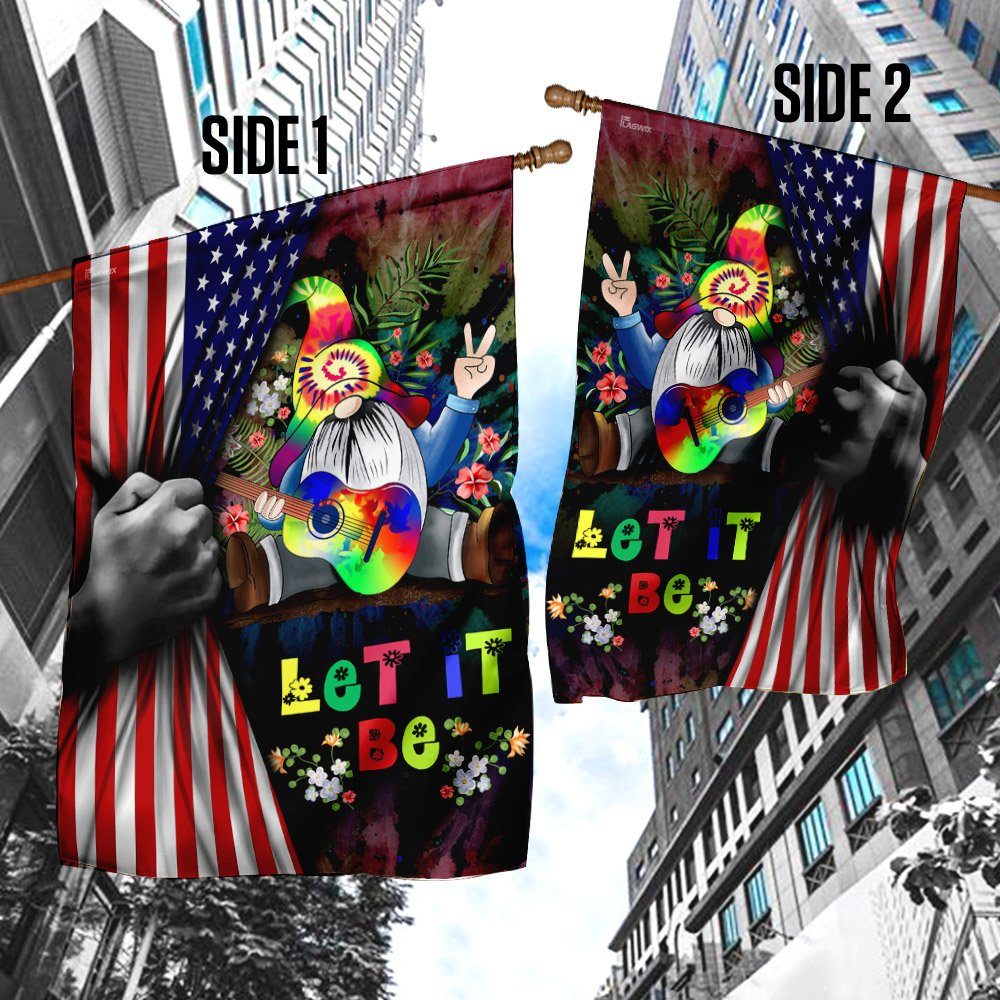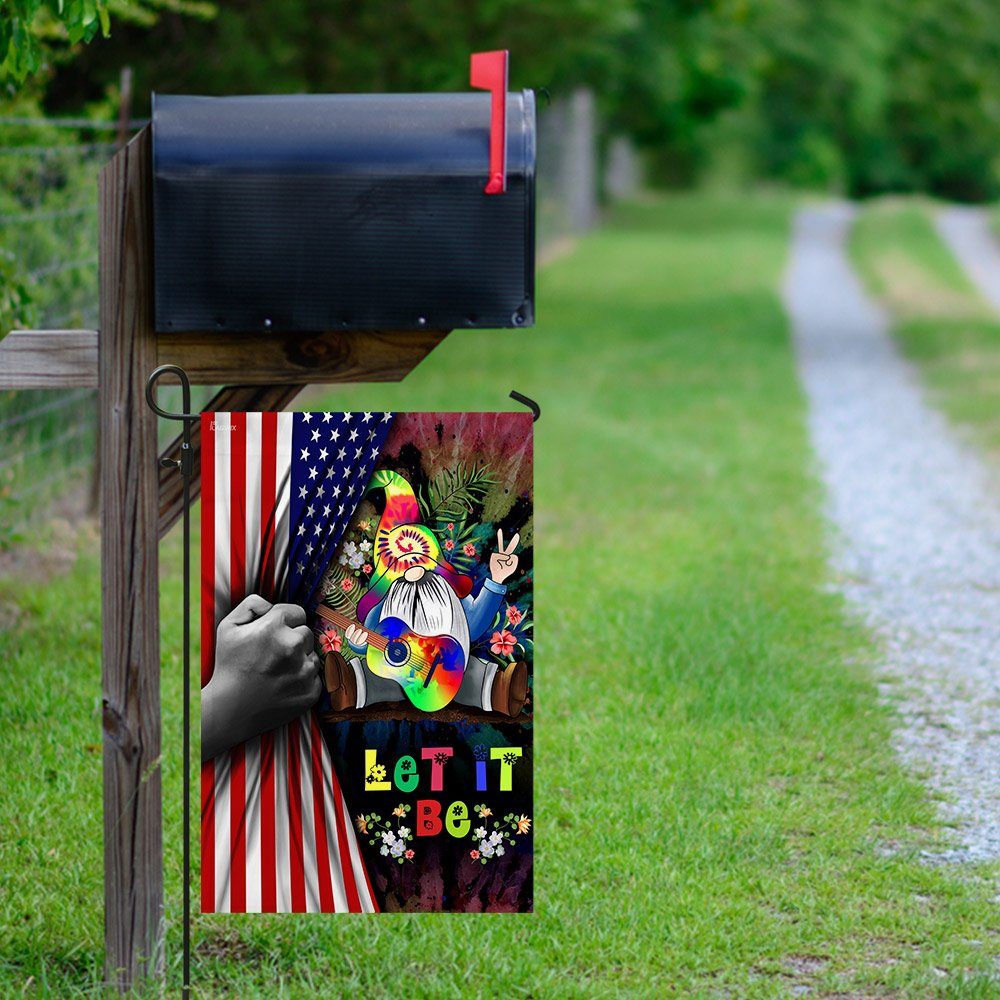 Let It Be Gnome Hippie American US Flag