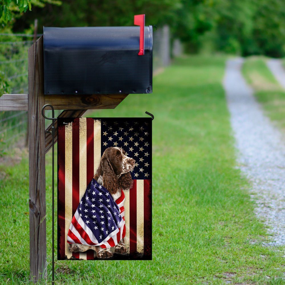 Liver and White Springer Spaniel American Patriot Flag