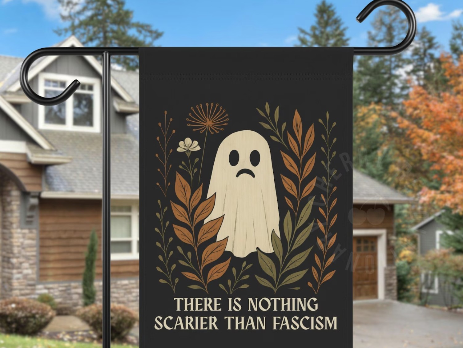 Add a spooky-smart twist to your Halloween décor with the “Nothing Scarier Than Fascism” Liberal Halloween Flag.