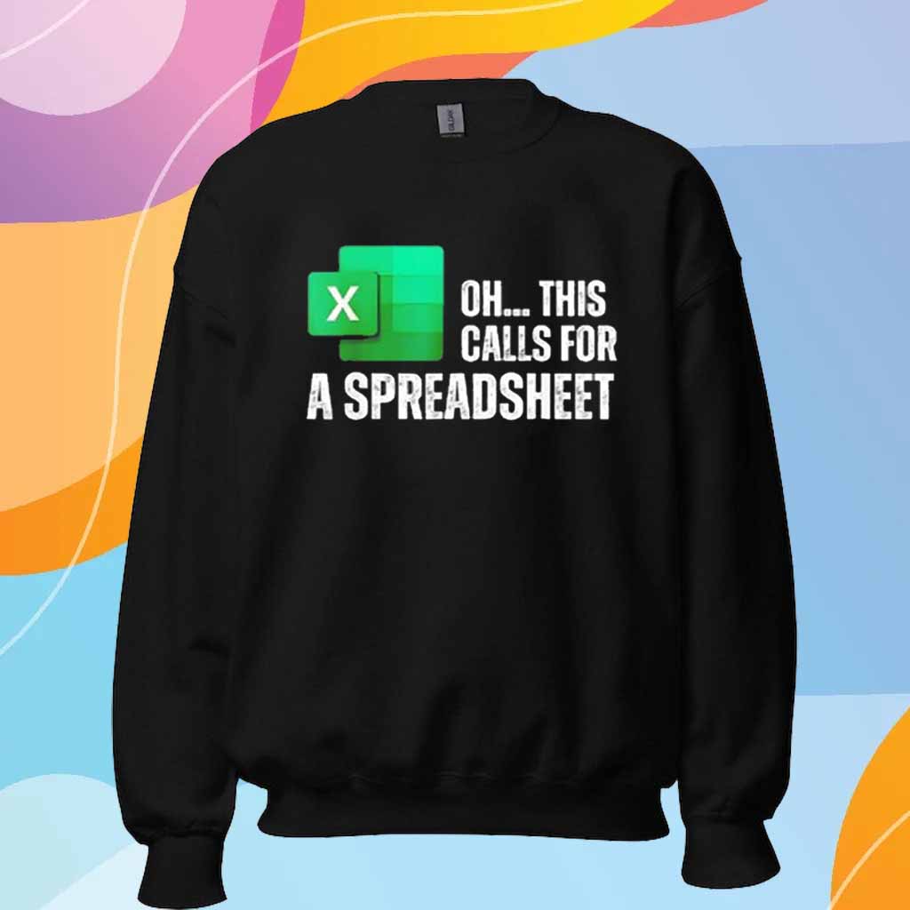 Whether you’re a seasoned data analyst, a spreadsheet wizard, or simply appreciate the beauty of organized information, the “Oh This Calls for a Spreadsheet” shirt is the perfect addition to your wardrobe. Order yours today and let the world know that you’re ready to conquer any data challenge with style and precision.