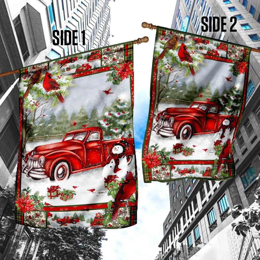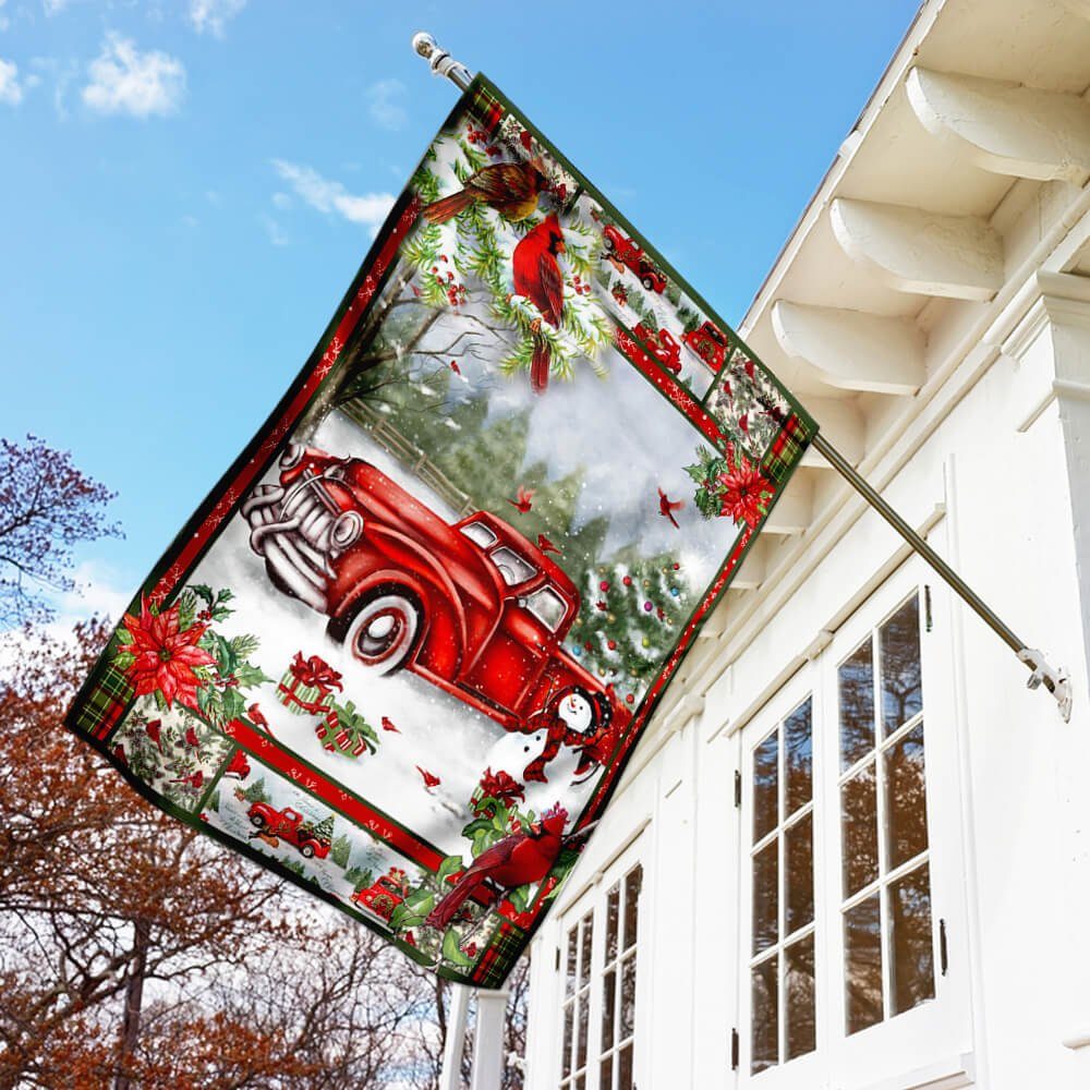 Red Truck Christmas Flag